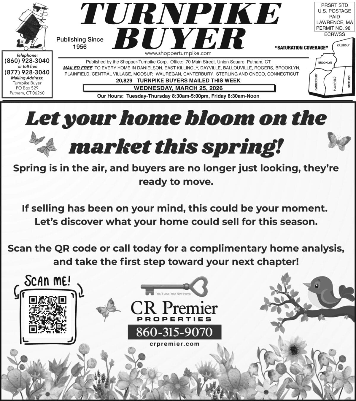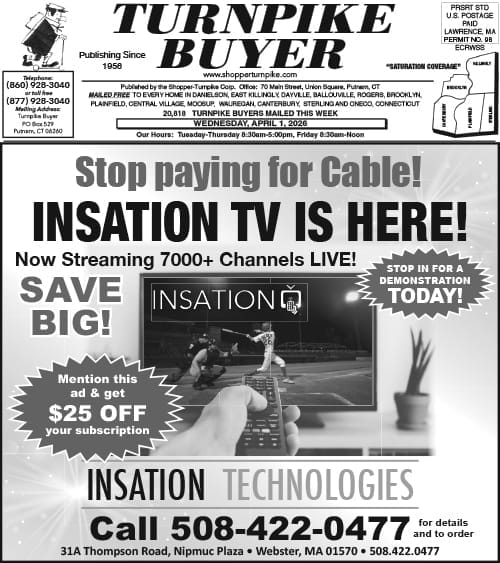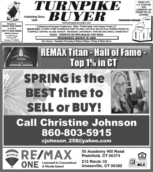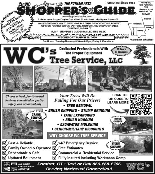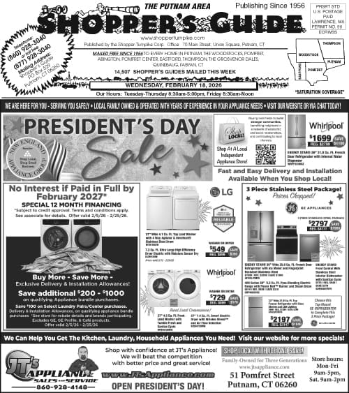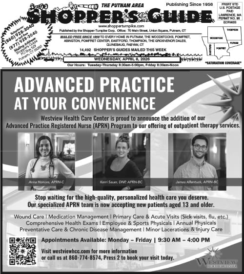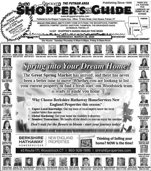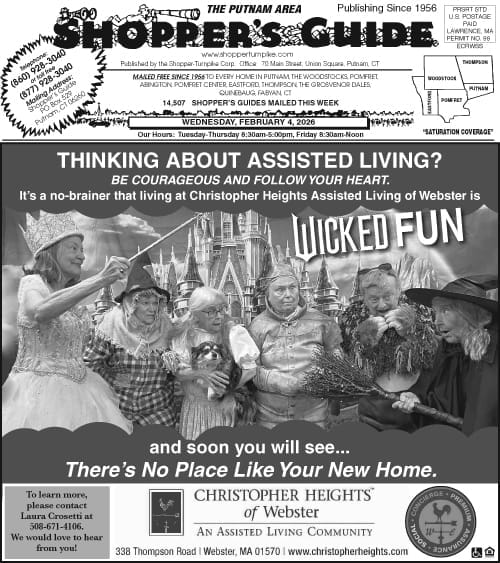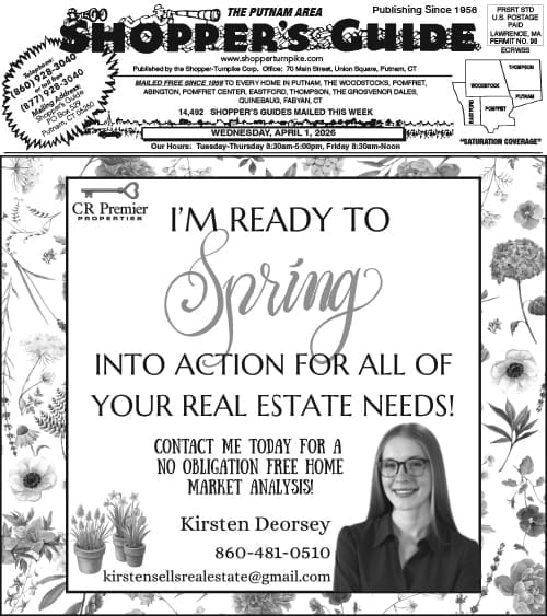 Putnam, Woodstock, Pomfret, Abington, Eastford, Fabyan, Thompson, Grosvenordale, North Grosvenordale, Quinebaug, Rogers, Dayville, Ballouville, and East Killingly, CT.